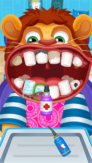 守护宝宝手游是一款具有教育意义的刷牙游戏,玩家在游戏中将会扮演一个小小牙医,帮助一些可爱的动物朋友们进行牙齿的清洁以及治疗,玩家可以按照相应的顺序帮助狮子宝宝刷牙,可以帮助青蛙宝宝拔牙等等。