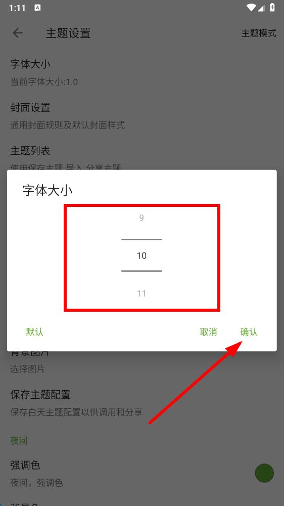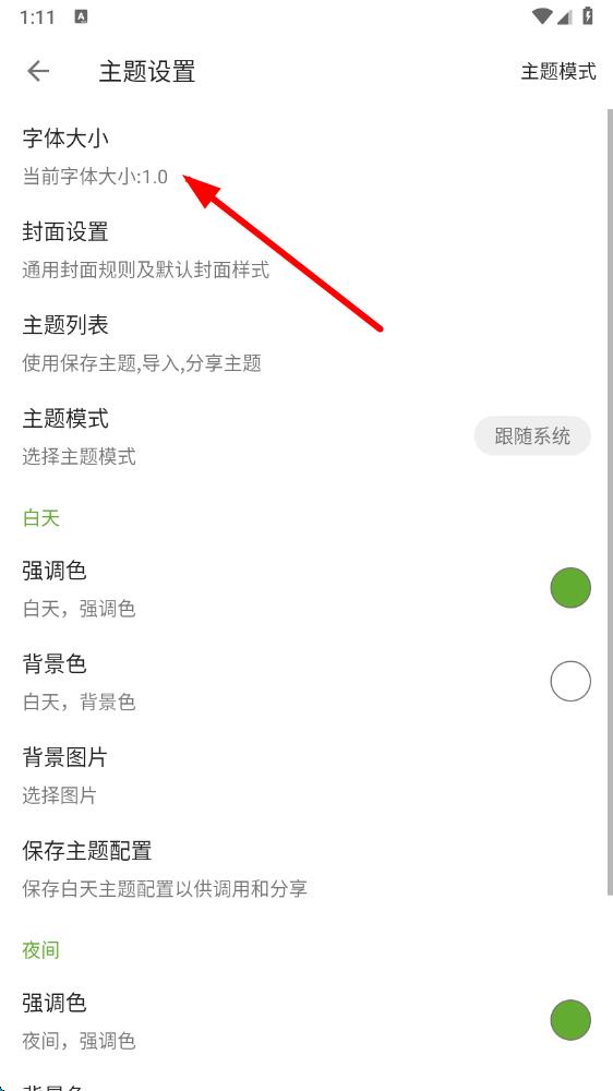 3、在主题设置界面里,点击字体大小选项,查看当前字体大小数值。