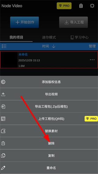 2、在弹出的操作菜单中,找到并点击下方删除选项。