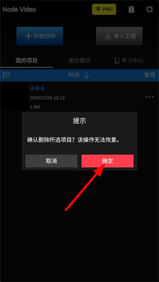 3、在弹窗中,点击确定按钮,即可删除该视频项目。