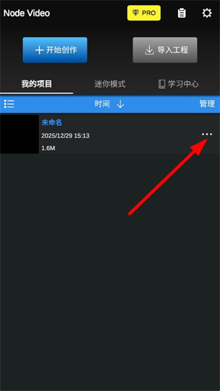 1、打开NodeVideo,找到并点击视频右侧的菜单按钮。