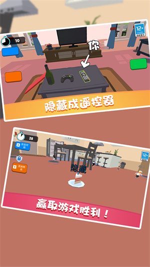 捉迷藏派对手机版是一款趣味生存游戏,玩家可以在一个充满神秘和惊险的世界中体验乐趣,故事发生在一个家庭的房子里,玩家需要在其中进行捉迷藏,并躲避怪物的追踪,在限定的时间内躲藏好且不被抓到,即是意味着胜利。