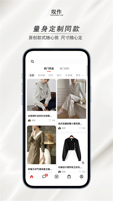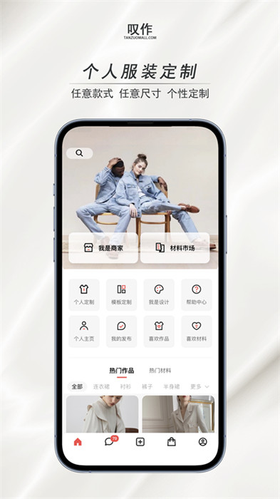 叹作软件是一款可以在线创作服饰的软件,同样可以定制类似的衣服在这里,让大家能看到很多详细的过程,可以自己从材料开始选择,让自己看到最舒适的面料,这样做出来的衣服才能是高级舒适的,还可以看到很多现成的模版,如果你也很喜欢定制服装,快来下载使用吧。