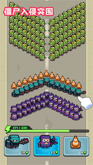 僵尸入侵突围是一款漫画风格的策略游戏,在游戏中,玩家需要发挥自己的聪明才智指挥小兵预防僵尸入侵,保护自己的城市,游戏中有多个不同能力的士兵供玩家挑选,每个角色都有自己独特的特点和技能,玩家需要合理地搭配士兵,制定适合的战略,才能够在这场突围战争中取得胜利。