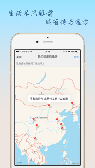 点击诗歌左下方的地理位置,就可以查看你的诗都被推荐到了哪里。