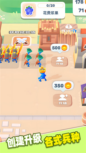 3、壮大军团:需要壮大自己的军团,使用各种兵种打造属于自己的王国。