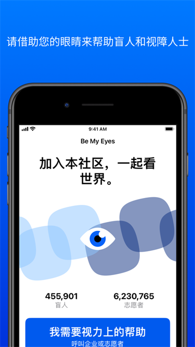 Be My Eyes苹果手机版是一款志愿者软件,也是一款视障用户寻求帮助的软件,在使用的时候只需要注册一下就可以,作为志愿者仅有帮助的机会,并且这机会是随机分配的,会有视障用户需求帮助的时候,帮助的通话视频就会打到我们手机上,我们可以选择帮助或者是拒绝,拒绝之后就会分享给其他的志愿者进行援助,在我们力所能及的时候进行帮助。
