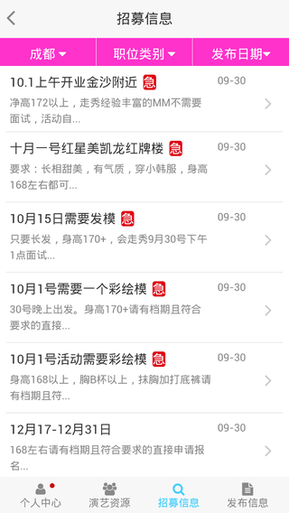 ◆提供全国各地的演出需求信息,包括模特、影视演员、主持人、歌手、舞蹈演员、器乐表演者,传统以及现代艺人等演出信息。