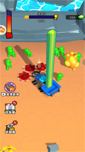 * 可以在战车库中选择自己喜欢的收割机,并利用武器库中的各种武器来提升收割机的能力。