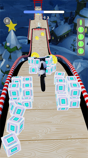 1、需要控制摩托车在设定好的跑道上畅快奔驰,收集金币和道具,解锁各种摩托车皮肤,享受极速奔跑的乐趣。