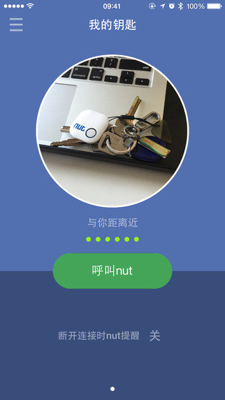 打开自在找app,nut贴片与手机连接状态下,在物品管理页面点击“呼叫”按钮,贴片会发出“滴滴”声和灯光闪烁提示物品位置。