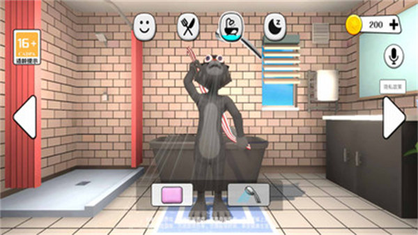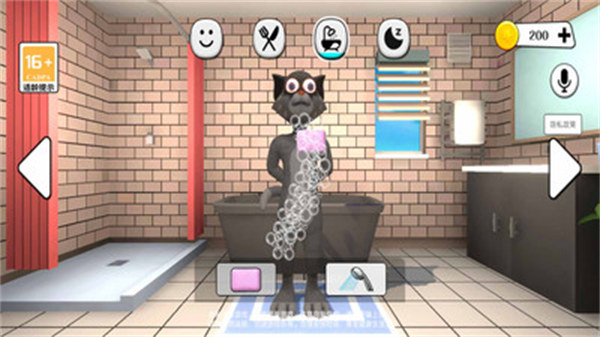 2、可以点击和拖动屏幕上的物品,如洗澡用具、食物和玩具,与小猫进行互动。