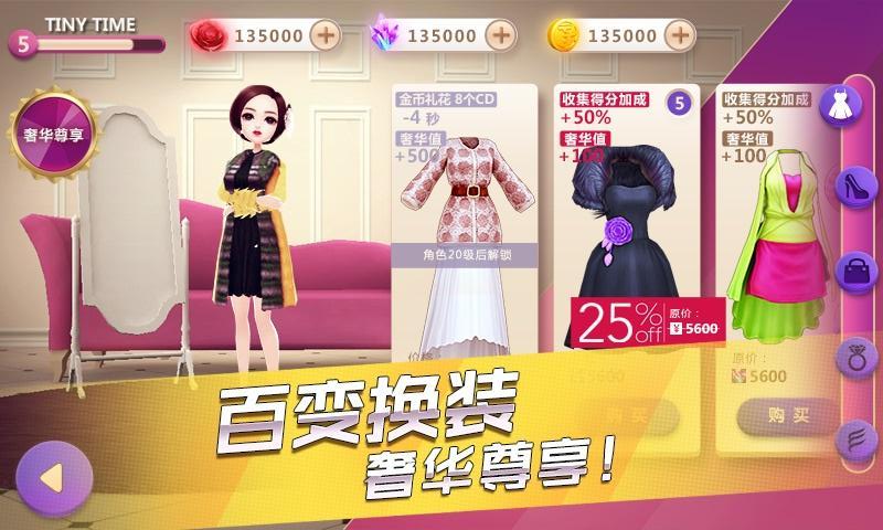游戏加入了独特的换装系统,在主界面选择下方的试衣间,那么就可以进入可以更好角色的衣服、鞋子、包包等物品!