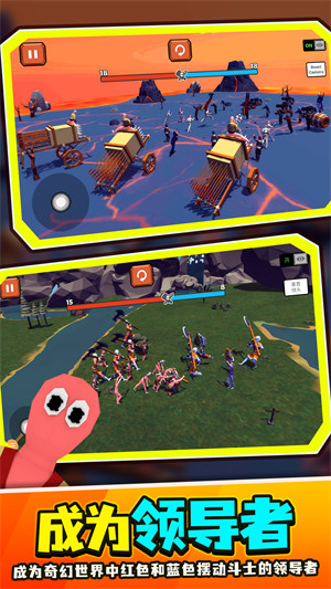 魔幻战争游戏是一款战斗指挥主题游戏,玩家将会在游戏中成为一个队伍的领导者,需要指挥自己的战士和对手进行战斗,队伍分为红队和蓝队,不同的队伍有不同的战斗指挥队长,合理的排兵布阵,顺利的取得游戏胜利。