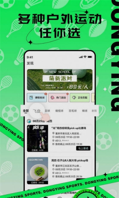 动影运动软件是一款有很多健身运动比赛的软件,能选择一些自己喜欢的运动课程,帮助自己能锻炼的更加专业,还可以看到很多专门的交流社区,能参加这些热门的活动感受运动的快乐氛围,还可以加入一些俱乐部,大家一起运动能感受更大的快乐,还可以参加很多运动比赛,提高自己的积极性。
