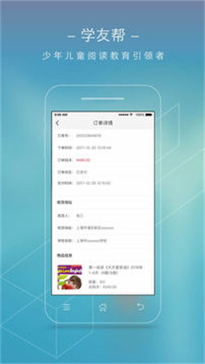 学友帮app是一款可以查询自己学校当前订单书籍的软件,这样的功能非常强大,可以随时查阅这些书籍的具体记录,增强大家对于阅读方面的重要性,还可以掌握一些书籍的订单生产日期,能看到学校购买书籍的具体时间,以及每个学校的开发情况,看到非常仔细的信息,方便开发商统计数据。