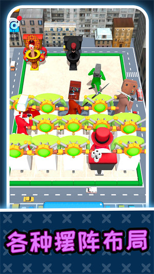 全局战争是一款极具策略性的冒险生存游戏,通过玩家扮演监控人的角色,面对城市中的马桶人怪物进行战斗和保卫任务,玩家需要运用各种有效的策略和战术,组合自己的战士团队,进行升级和培养,布置摆阵,应对各种挑战。