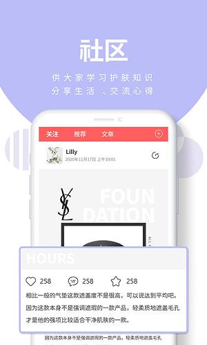 社区互动:可以在社区中与其他护肤爱好者交流心得、分享经验,并获取专业护肤意见。