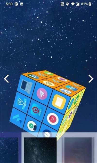 2、将传统的平面桌面转化为三维立体的魔方,通过旋转魔方块来切换应用。