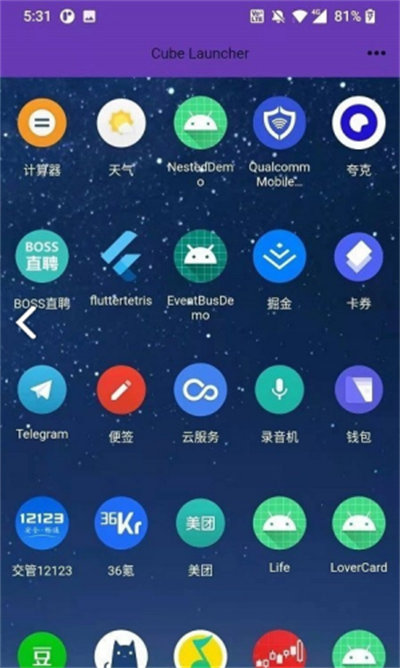 1、可以一键设置所有常用软件显示在魔方的各个面上,如通讯录、相机、音乐等。