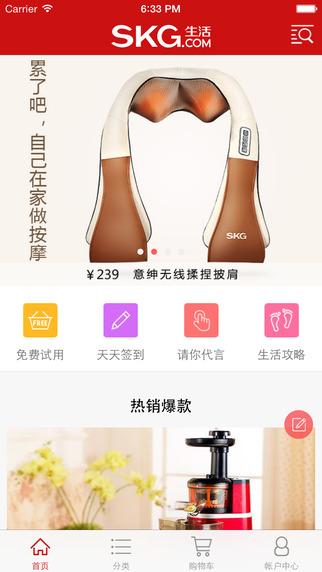 SKG生活iphone版是一款让你轻轻松松享受国外生活的手机购物平台,我们的商品有专业的生活体验师帮您挑选,每件都是海外本地居民所喜爱的优良精品,还有更多美观实用的商品尽在SKG生活。喜欢就下载吧!