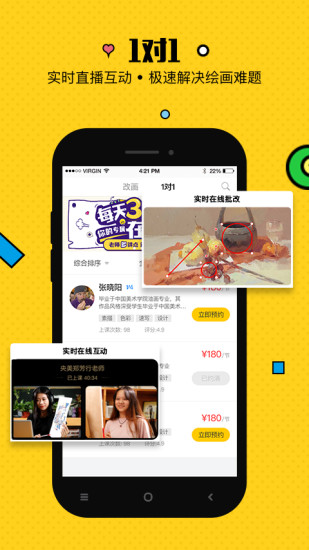 4.名师指点榜中寻:在发现页面有榜单、在线访谈、名师认证。榜单中都是业内顶级名师,美术生可以得到他们的1对1在线指导,快速提升绘画功底与实力,彻底摆脱考前瓶颈。