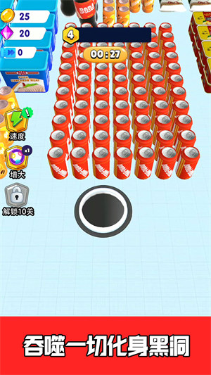 1、任务就是不断吞噬各种物体,从蛋糕、可乐到水果等,任何东西都能成为黑洞的美食。