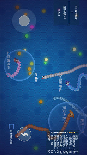 * 战斗过程中,需要灵活运用策略和反应速度,才能获得胜利并成为无敌贪吃蛇的王者。