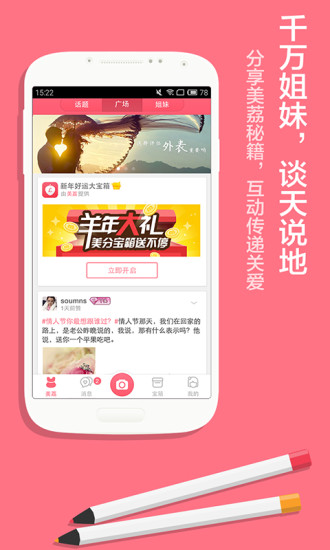 姐妹聊不停,天天新话题。吃美食,斗小三、旅行,爱情,母婴、婆媳,创造你的话题,美荔聊无限。私聊,群聊,语音聊,图文并茂,美荔让心心相惜的姐妹没有距离!