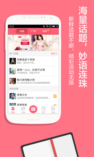 美荔姐妹聊ios是一款为女性提供交流服务的软件。这里是女人的专属领域,用户每天都可以看到里面姐妹们的真实生活,还有海量的最新的流行话题等着用户们体验和参与,拉近姐妹们之间的距离,大家一起畅聊无限。还有贴心的经期助手,为你的经期保驾护航,广大的姐妹们赶快下载吧