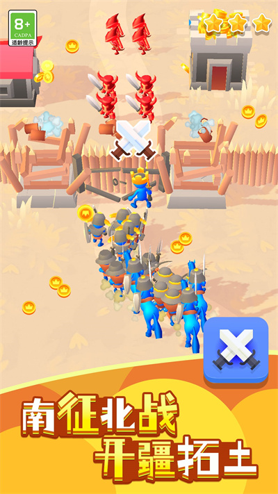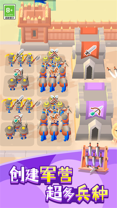 ◆在征战沙场时,将面对来自敌方城堡的挑战,英勇地指挥军队,使用策略粉碎敌人的防线;