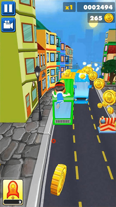 1、城市中各种场景和阻碍物不断出现,通过灵活的操作手法躲避各种突然而来的各种障碍;