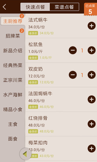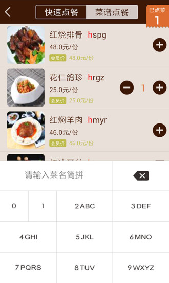 2.点餐:服务人员可通过快速检索、菜品分类及招牌推荐等方式进行高效点选菜品。