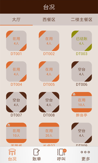 1.台况信息一目了然,开台、并台、转台、清台一应俱全。