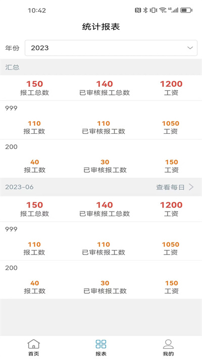 2、多种直观的统计报表和图表,如计件工资总额统计、计件工人绩效排名等;