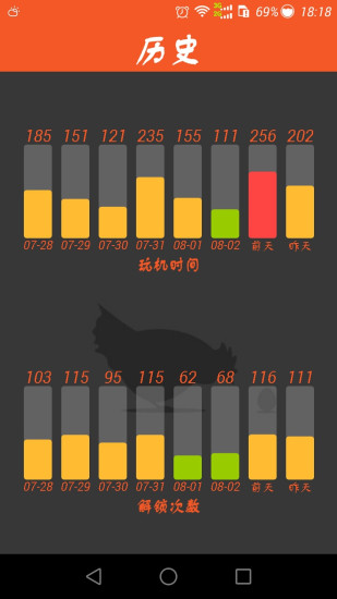 精确统计每天玩手机的时间,展示最近几天玩手机的时间长短记录、解锁次数记录。