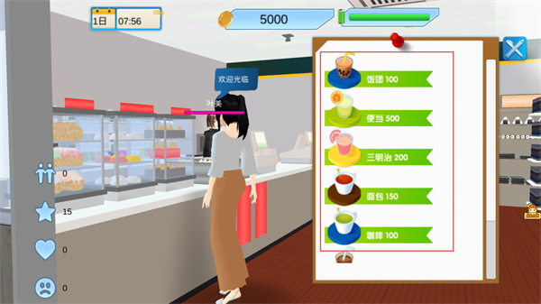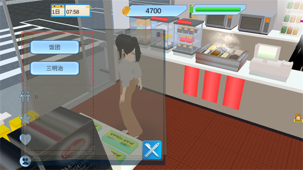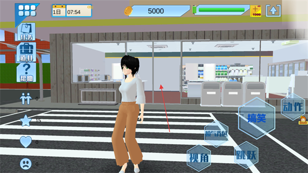 1、进入游戏后,操控角色在校园中移动,可前往便利店。