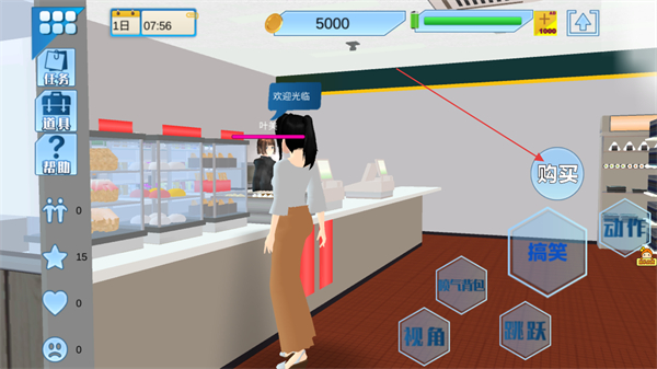 2、进入便利店之后,在收银台跟前点击购买按钮。