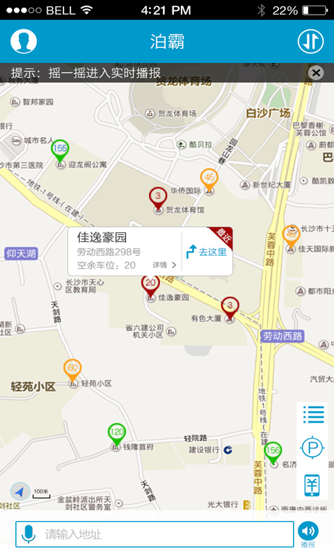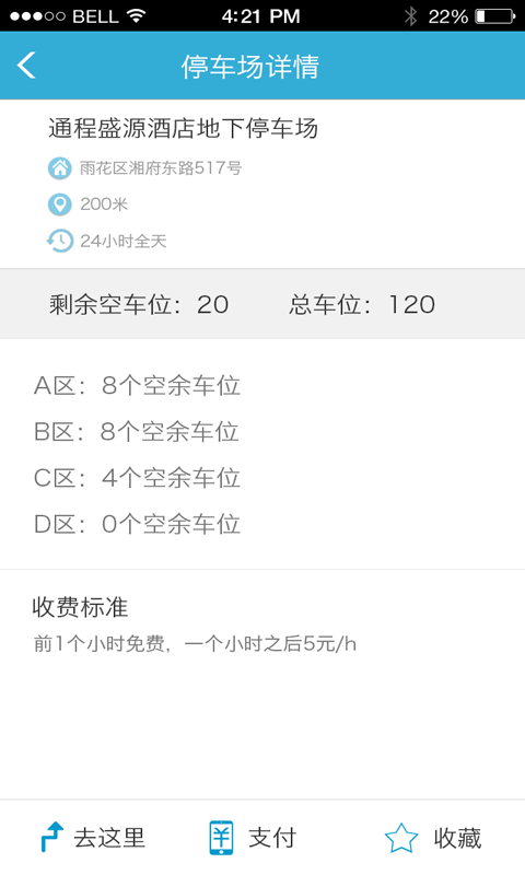 3.“泊霸 ”App最大的特点就是停车场信息非常全面,停车场空余车位、地址、距离都有,甚至精确到了每个车位,出行前可以预定指定地点的车位。