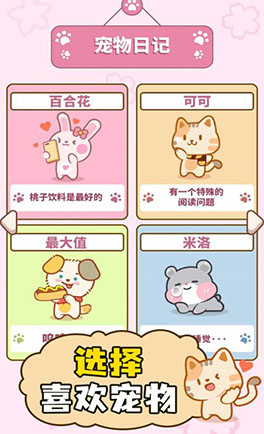2、每个宠物都有不同的创意设计,获得足够的经验来升级小猫的等级;