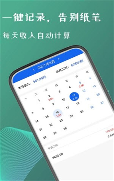 1、提供智能的工资计算功能,根据用户的考勤记录自动生成工资。