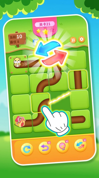 送小仓鼠回家是一款趣味性和可玩性都很高,以帮助迷路的小仓鼠回到家为主题的益智游戏。在游戏中玩家需要正确转动地道的方向,让它们可以连接起来形成一条顺畅的道路,就可以让小仓鼠顺利的回到家。玩家需要探索各种关卡,解决难题,收集道具,帮助小仓鼠找到回家的路。