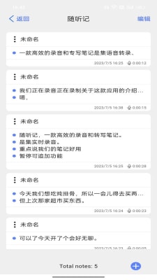 随听记app是一款能随时转换录音和文字的软件,准确的记录当天的笔记和工作内容,让大家用智能的语音技术,增加自己的工作和学习效率,也可以快速完成自己的工作,高效管理这些录音文件,并且能实时同步,让文字和语音能快速转换,整个转换过程非常快速且准确,并且软件支持多种语言,可以迅速记录自己需要的文件过程。