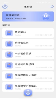 随听记app是一款功能非常强大的记录笔记的软件,帮助自己管理录音过程和方式,可以满足大家的生活和学习的需求,能快速记录上传自己的笔记,这样通过录音记录下来能看到更加具体的工作内容,也可以看到更加全面的数据,不会泄露自己需要记录的笔记。