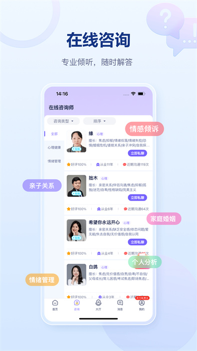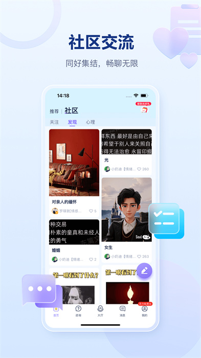 1、提供了用户社区,你可以在社区内与其他用户交流心理经验和心得。