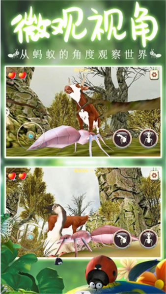 1、从蚂蚁的角度观察世界,微观视角,让玩家在游戏中体验到蚂蚁的生活和战斗方式;