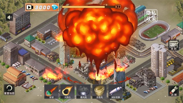 星球撞击模拟游戏是一款独特而刺激的动作冒险主题游戏,在这个游戏中,玩家将有机会亲手参与城市的毁灭,体验破坏的快感,玩家可以选择各种破坏性的道具,以最高程度地破坏城市的繁华和安宁,将所有的高楼炸毁,享受不一样的解压快感。
