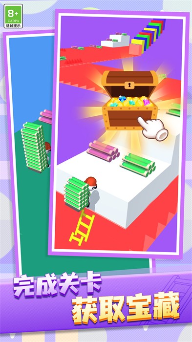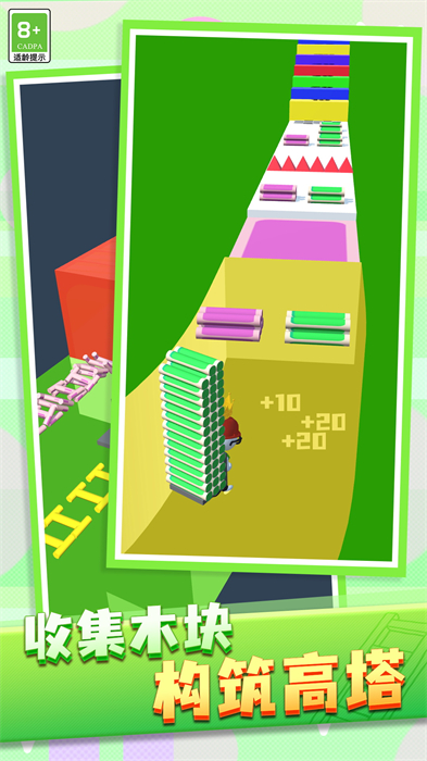 叠塔大师是一款富有创意和挑战性的休闲益智游戏,旨在给玩家带来无尽的乐趣和冒险体验,在这个游戏中,玩家将扮演一位勤劳的工人,通过收集各种木块来构筑自己的高塔,同时在穿越障碍、战胜对手、完成任务关卡的过程中获得宝藏与奖励,最终带领自己的高塔达到无比光辉的巅峰。