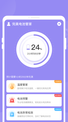 完美电池管家软件是一款非常实用的辅助手机电池的软件,能帮助用户管理好手机电池的使用寿命,并且在长时间的使用当中可以优化电池,让用户注意保护电池的情况,可以看到每天手机使用时长以及温度情况,出现紧急情况,会发出电池预警,非常便利。