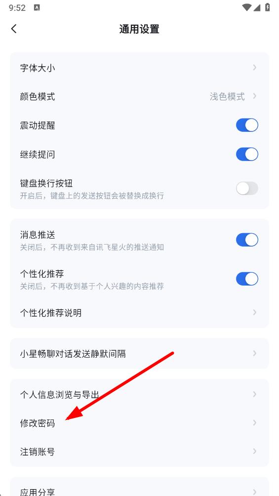 4、进入通用设置界面后,点击修改密码,